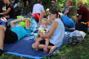 – Teraz Maksymilian się budzi, bo pewnie jest głodny. W wózku mamy wszystko, co jest potrzebne. My dojeżdżamy codziennie na Msze św., a wczoraj przeszliśmy całą rodzinką 300 metrów. Tak sobie pielgrzymujemy. Ja się czuję bardzo dobrze, dlatego też tu jesteśmy. Nie wyobrażamy sobie nie być na pielgrzymce tym bardziej, że przez ostatnie dwa lata była to tylko sztafeta. Planujemy być na wejściu na Jasną Górę – dodaje matka
