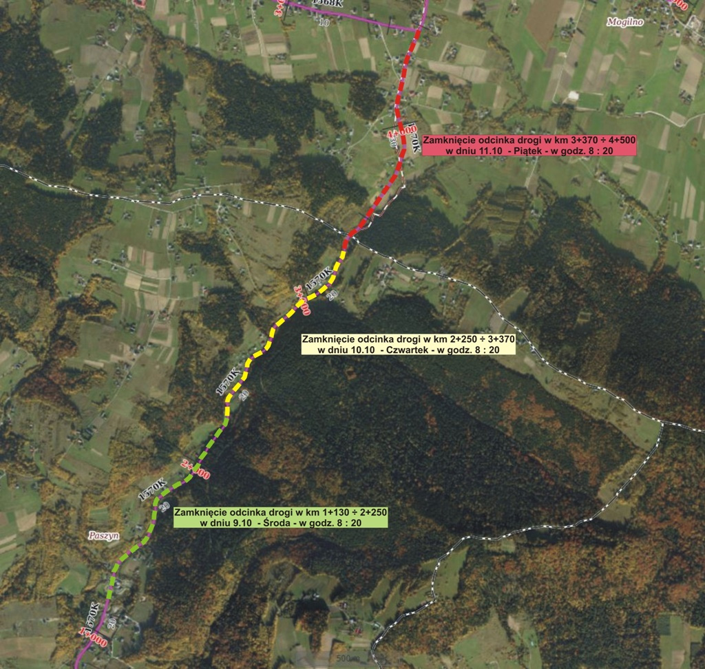 11.10.2024 r. – PIĄTEK – na odcinku w km 3+370 ÷ 4+500 od granicy Paszyn/Koniuszowa do skrzyżowania z drogą powiatową nr 1568K w m. Koniuszowa,