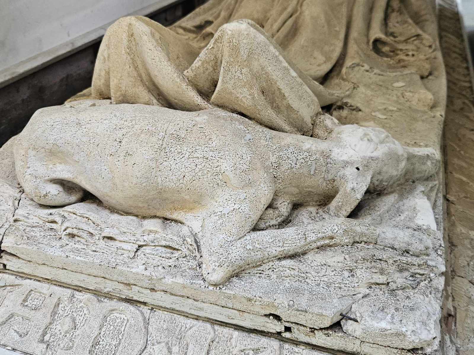 -Przywieźliśmy po części odrestaurowany, można powiedzieć właściwie ogarnięty tylko z grubsza, pierwowzór sarkofagu Królowej Jadwigi. Tego sarkofagu, który znajduje się na Wawelu. Twórcą tego sarkofagu był Antoni Madeyski. Sarkofag posadowiony w 1902 roku w listopadzie, a ten przywędrował tutaj z Włoch do Polski, do nas. Jak państwo zobaczycie u góry u wezgłowia jest Rzym 1901, a więc musiał być wykonany w Rzymie w 1901 roku. Okazuje się, że mamy model 1 do 1, w takiej samej wielkości znajduje się ten model na Wawelu.