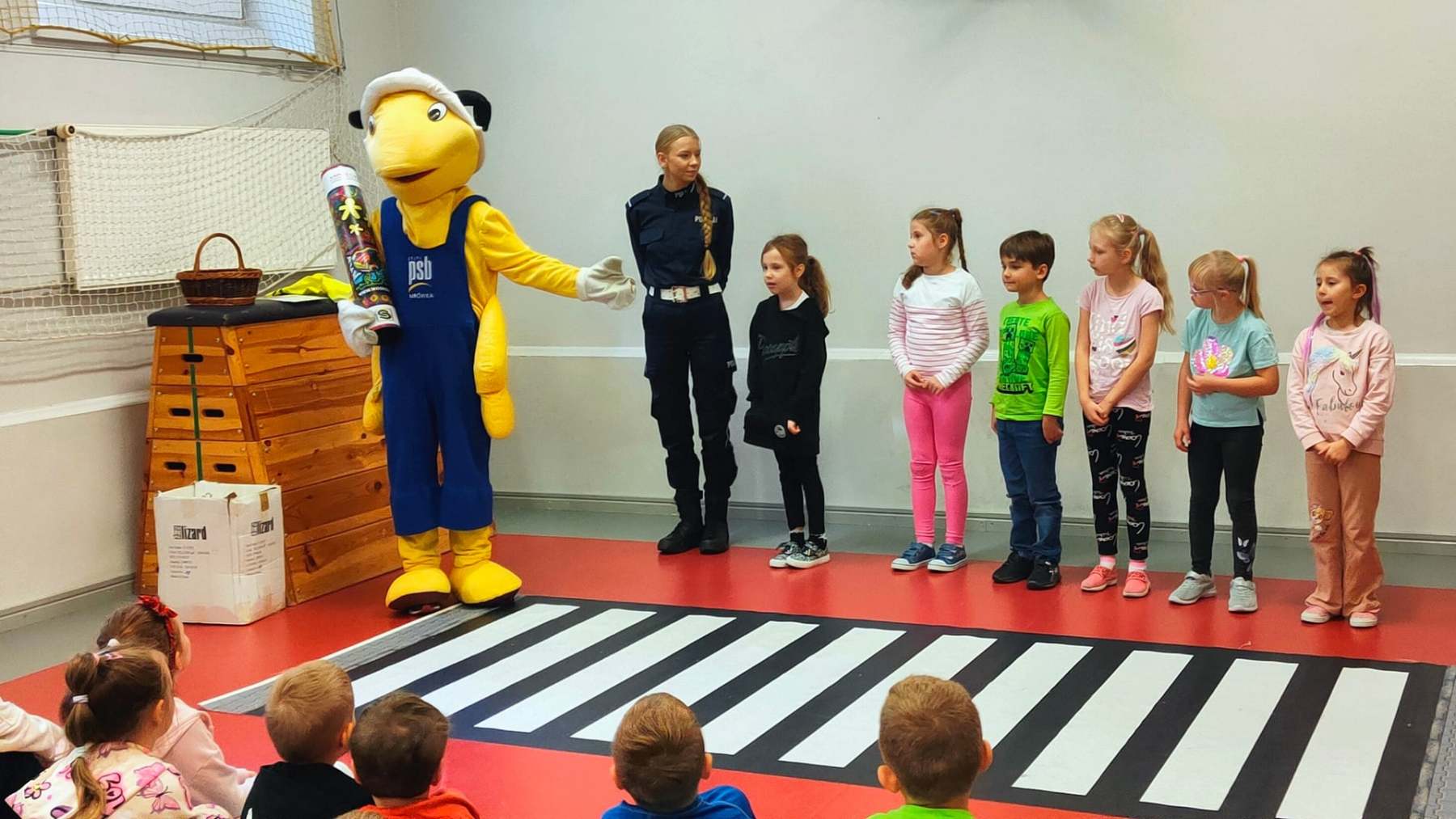 Prelekcja była kolejną odsłoną akcji 'Bezpieczna droga do szkoły z Mrówką’. W ramach działań, najmłodszych uczniów odwiedzają policjanci wraz z Panem Mrówką – maskotką firmy Sufigs sp. z o.o w Tarnowie i Zakliczynie. Firma jest patronem akcji promującej bezpieczeństwo, a jednocześnie sponsorem kamizelek odblaskowych dla dzieci w odwiedzanych szkołach.