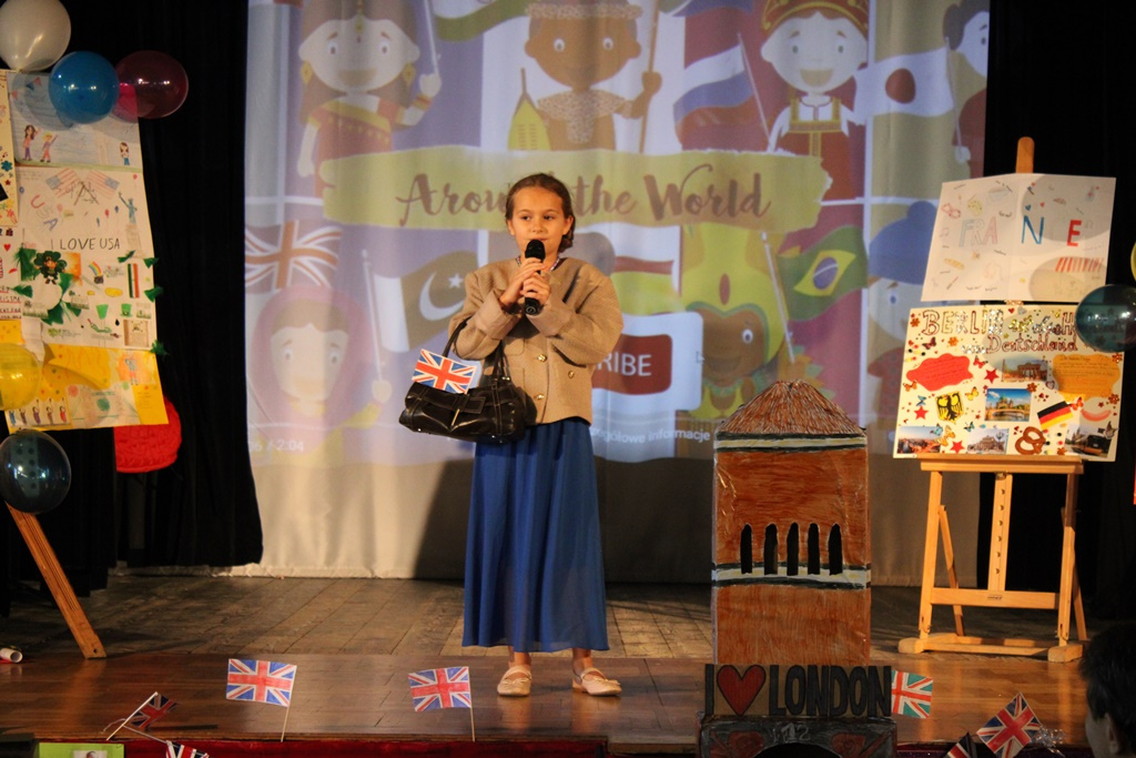 Dzieci prezentowały piosenki, pokazy i plakaty o różnych państwach. Brały też udział w konkursie na kostium związany z wybranym przez siebie krajem obcojęzycznym. Jak same mówią, jest to forma nauki nie tylko o samym języku, ale też historii czy tradycji danego państwa.