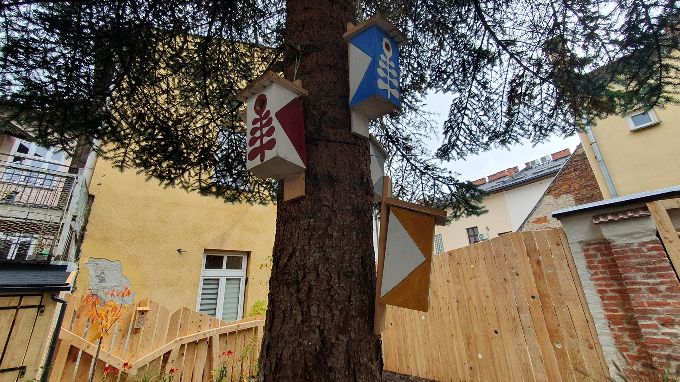 Dekoracje parku, ale też budki dla ptaków zostały wykonane przez podopiecznych pałacu, między innymi z koła ceramicznego.