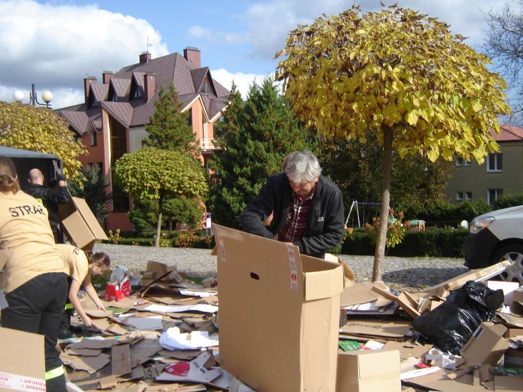 Do pomocy przy sprawnym odbiorze makulatury i umieszczaniu jej w kontenerach włączyła się już po raz drugi młodzieżowa drużyna Ochotniczej Straży Pożarnej Kolanów wraz z prezesem OSP Grzegorzem Rafą. Równie ofiarnie jak młodzież pracowali parafianie.
