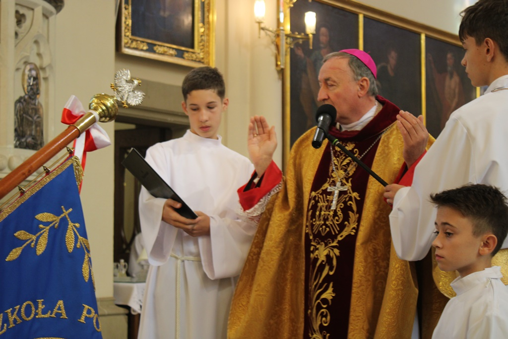 Teraz tej domowej atmosferze będzie towarzyszył św. Jan Paweł II, patron szkoły widnieje na jej sztandarze, poświęconym podczas uroczystej Mszy Świętej sprawowanej przez biskupa Andrzeja Jeża w grybowskiej bazylice.
