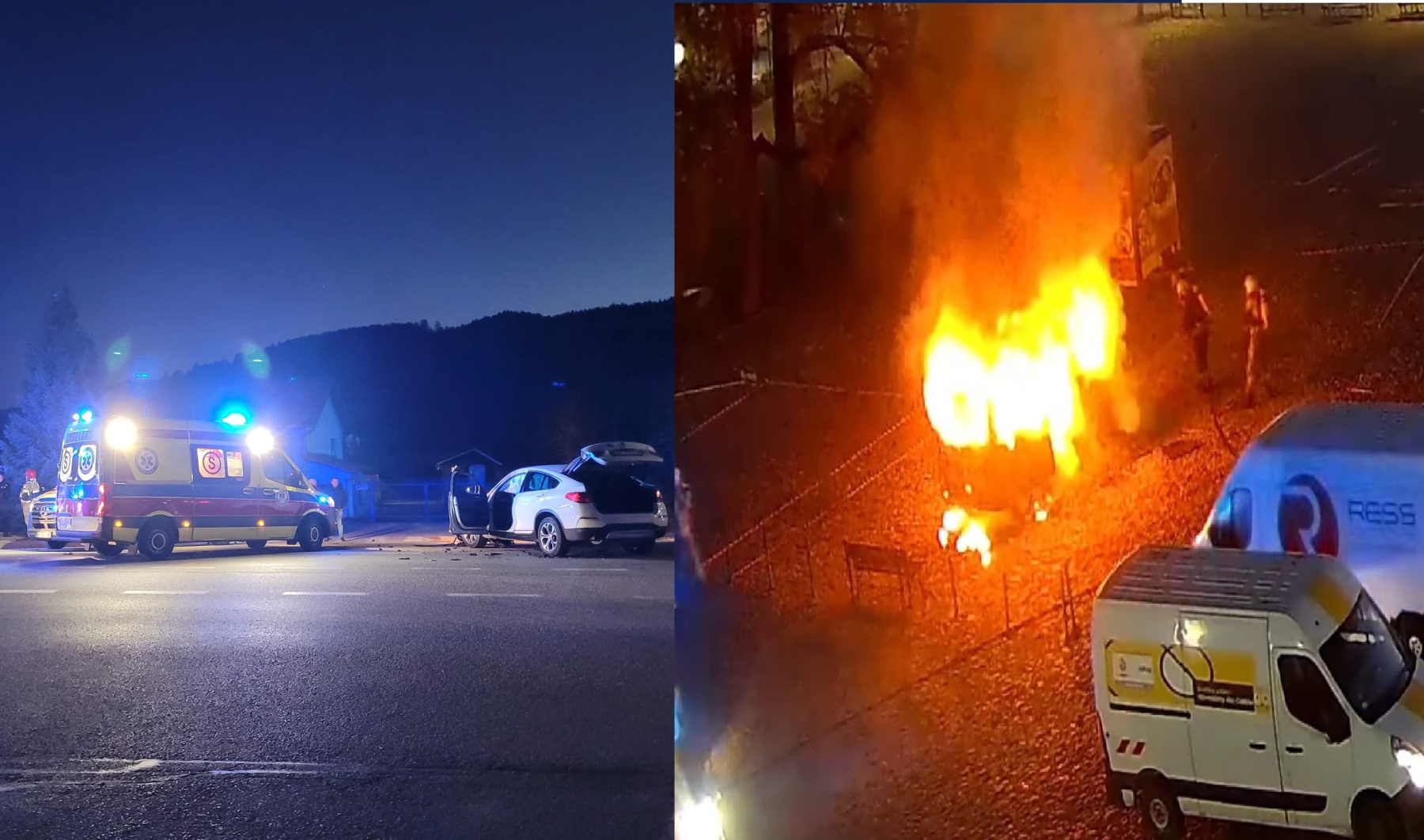 Pracowity poranek służb. Wypadek na krajówce, pożar dostawczaka na rynku i drzewo blokujące przejazd [ZDJĘCIA]