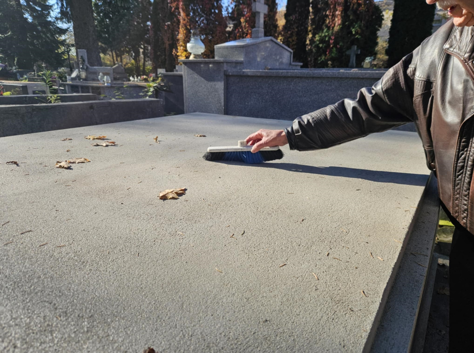 -Co parę dni sprzątam, a jeszcze do tego trzeba pryskać bo ten mech wychodzi na grobowiec. Pasowałoby to jeszcze raz wyczyścić i spłukać. -Zbieranie liści, przycinanie tych traw, które są, jak trzeba umyć grobowiec to też się o robi. No ale my ten nagrobek, który tutaj jest staramy się utrzymywać tak, żeby była pamięć o naszych bliskich