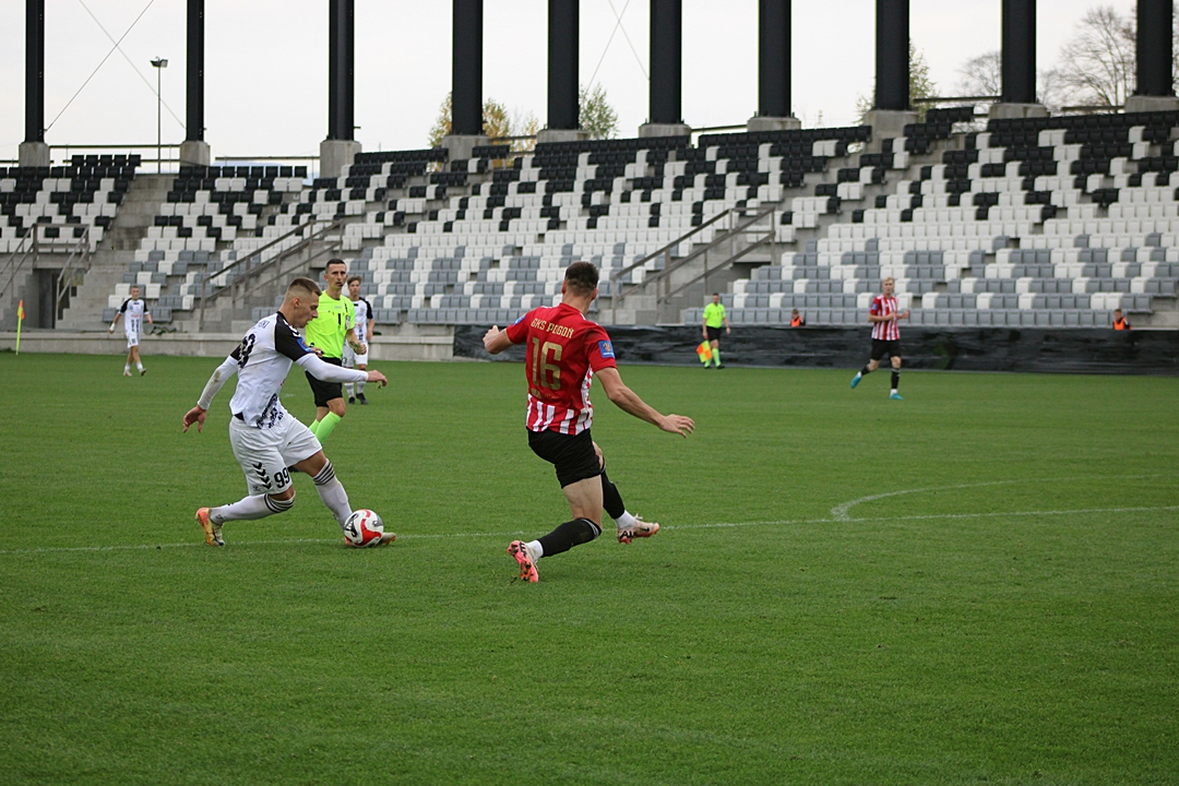Drużyna z Grodziska Mazowieckiego miała liczne okazje do zdobycia bramek, gracze Pogoni pudłowali, obijali słupek z poprzeczką lub świetnie interweniował bramkarz biało-czarnych Martin Polacek.