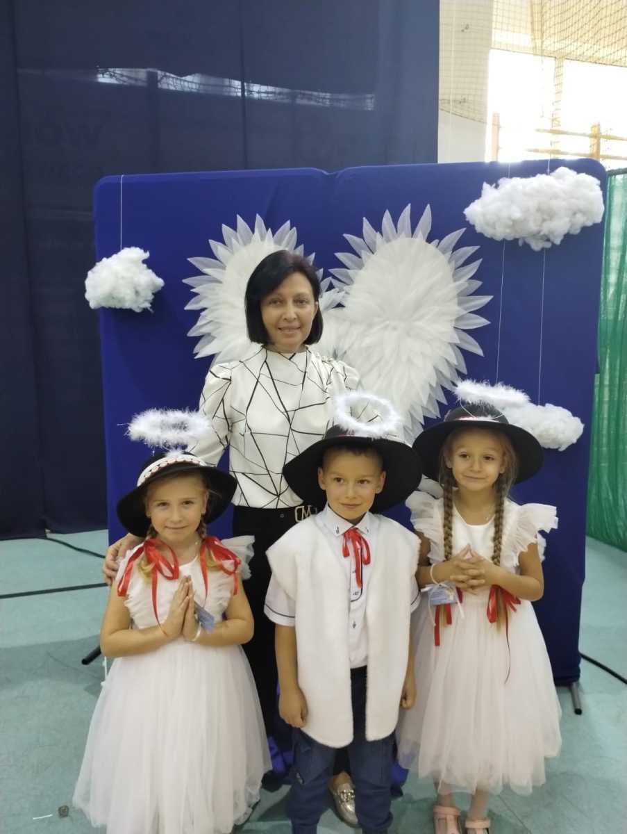 – Aniołowie pomagają nam np. podać piłkę podczas meczu, pilnują nas, pomagają nam wypełniać uczynki miłosierdzia. – Patronem naszej szkoły w Domosławicach jest ks. Józef Tischner. Przygotowaliśmy anioły tischnerowskie. – Mamy kapelusze, bo nosił je nasz patron. Ks. profesor czuwa nad nami, abyśmy byli dobrymi uczniami.