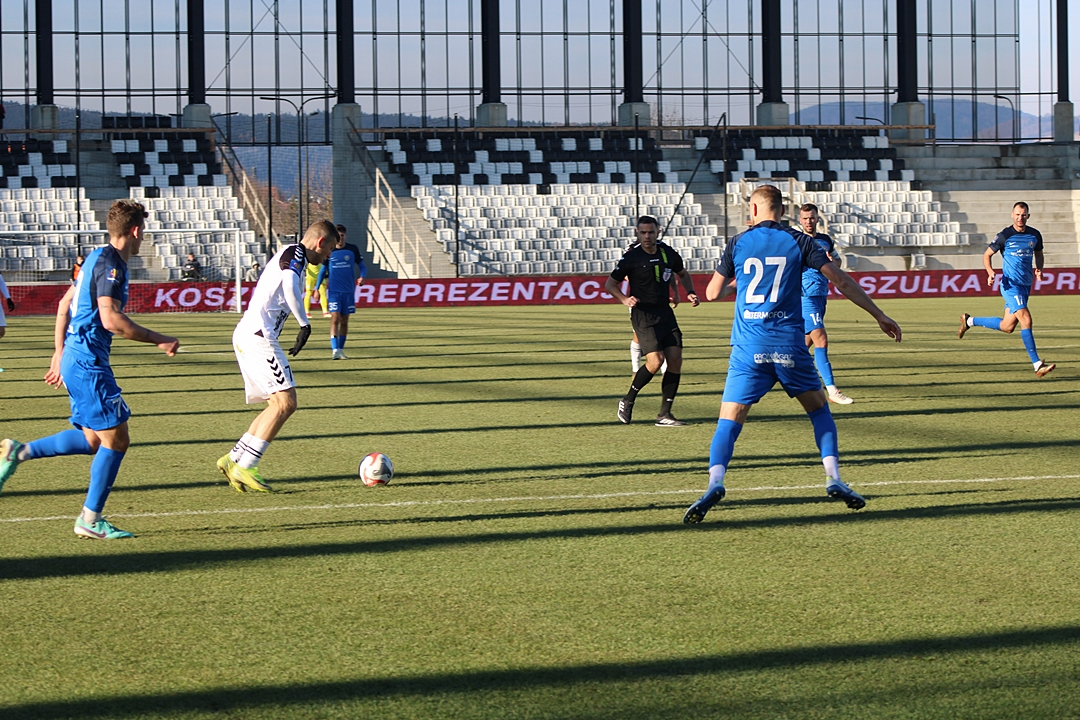 Sandecja nie wykorzystała swojej najlepszej w 90 minucie potyczki. Peter Kolesar uderzał z pola karnego, a piłka po głowie Łukasza Sołowieja z Puszczy trafiła w poprzeczkę.