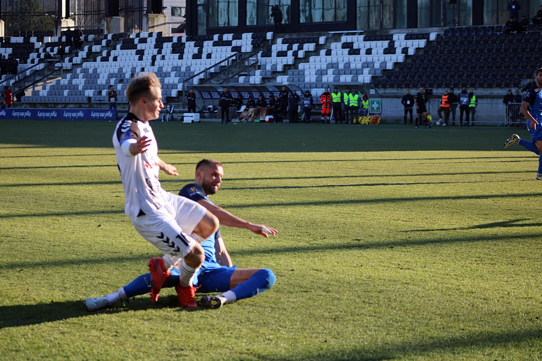 Sandecja nie wykorzystała swojej najlepszej w 90 minucie potyczki. Peter Kolesar uderzał z pola karnego, a piłka po głowie Łukasza Sołowieja z Puszczy trafiła w poprzeczkę.