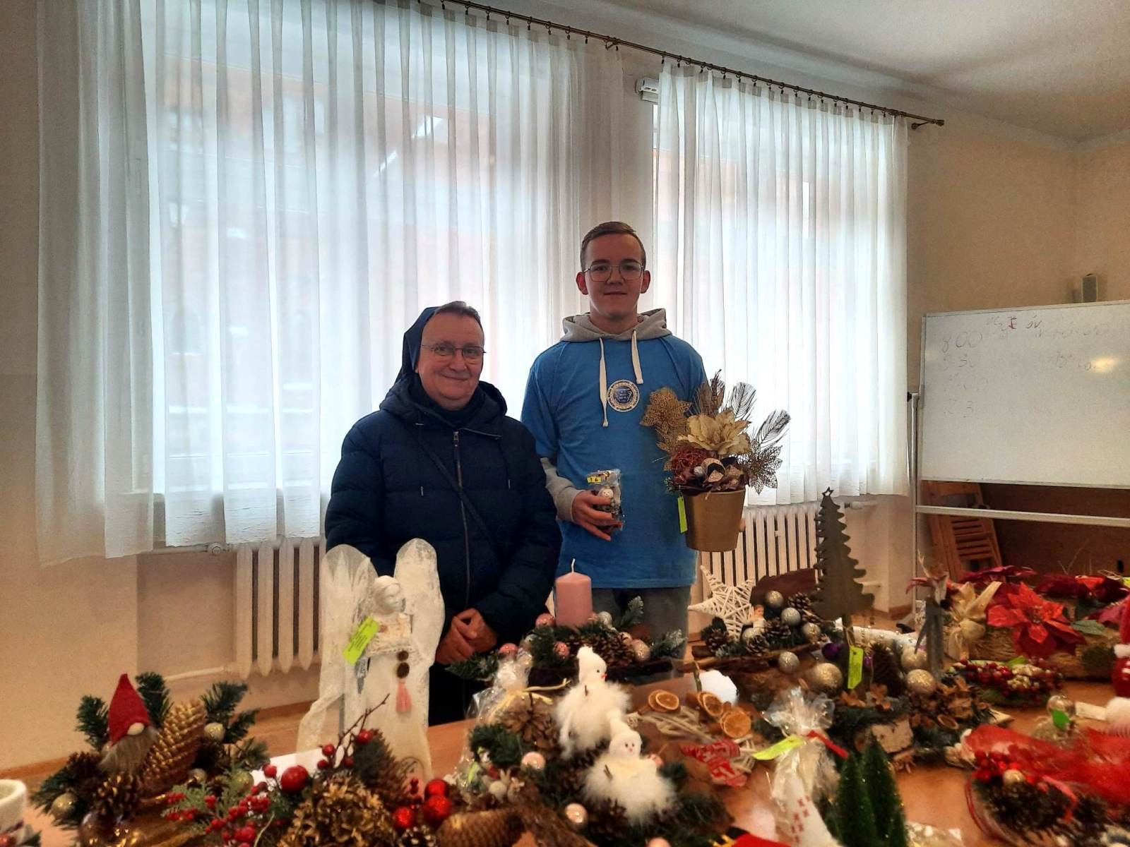 – W przygotowanie stroików, ozdób świątecznych jest zaangażowana cała społeczność szkoły. To uczniowie, nauczyciele i nasze rodziny. Duża część stroików jest przygotowywana w domach, także w szkole są zajęcia, na których powstają świąteczne ozdoby. Ponadto między lekcjami w te prace włączają się wolontariusze. W niedzielę kilkunastu uczniów będzie pomagać w prowadzeniu kiermaszu.