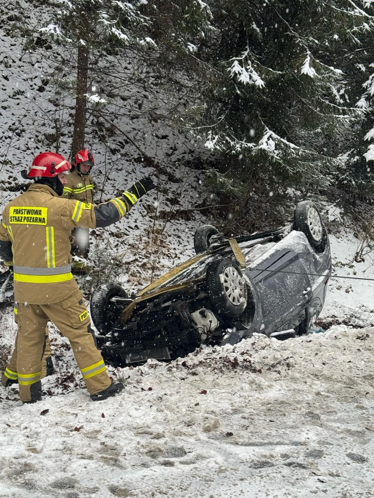 Inna sytuacja, bo dachowanie samochodu miało miejsce w niedzielę (15 grudnia) o godz. 10.30. Wcześniej 25-latka, która kierowała samochodem, straciła nad nim panowanie z powodu zbyt dużej prędkości i uderzyła w barierki.