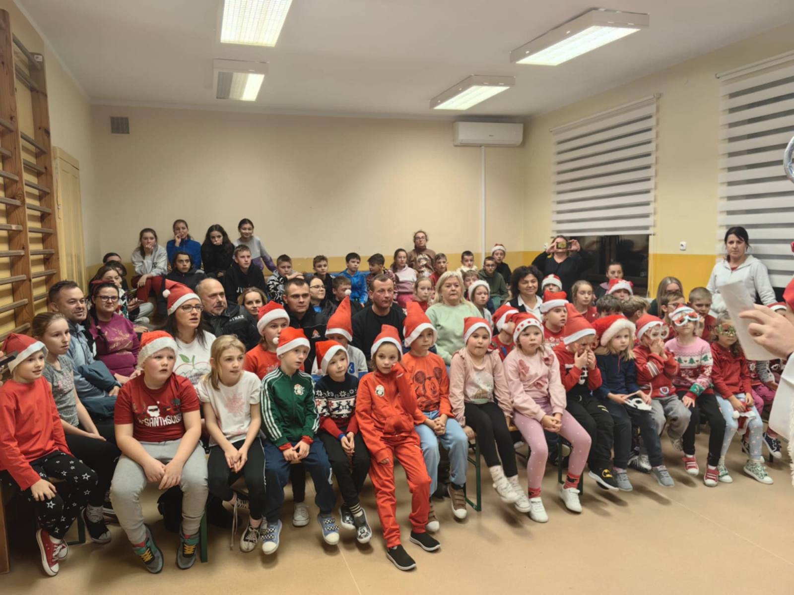 W pewnym momencie podczas zabawy na boisku szkolnym dzieci usłyszały dzwoneczek i zobaczyły w oddali św. Mikołaja, który zrobił psikusa i minął naszą szkołę. Dał dzieciom czas na jego odnalezienie. Pod opieką nauczycieli oraz straży pożarnej bezpiecznie można było ruszyć w teren!