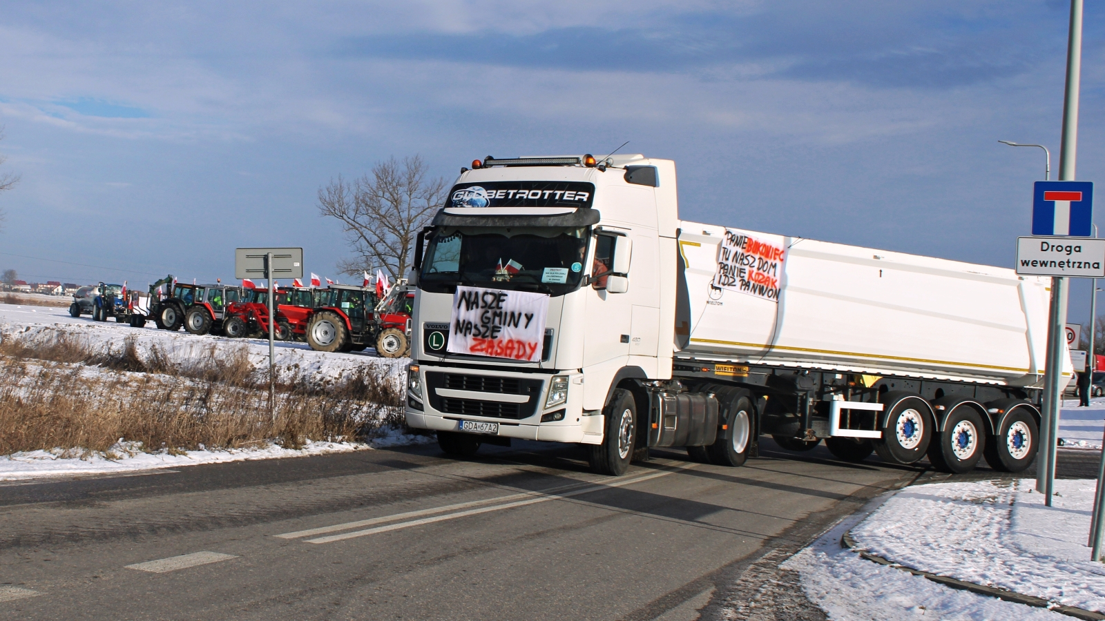Zorganizowali dzisiaj (14.01.) protest drogowy – dziesiątki ciągników rolniczych, aut osobowych, busów dostawczych i ciężarówek poruszały się drogą wojewódzką nr 768.