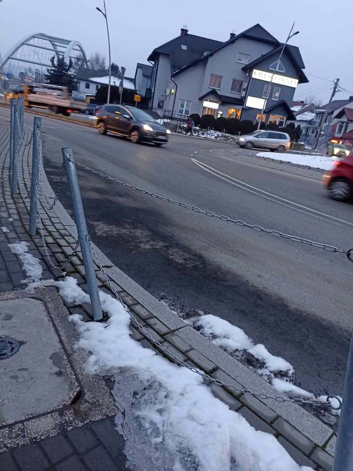 Nowy Sącz: Zniszczone barierki utrudniają ruch pieszych. Słuchacz prosi o interwencję [ZDJĘCIA]
