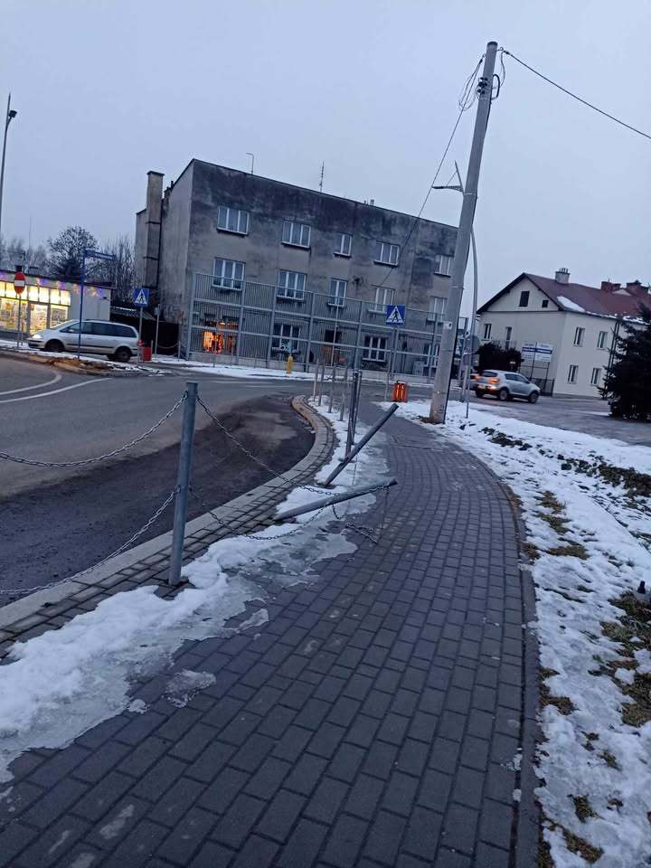 Piesi idący chodnikiem przy rondzie przy ul. Krakowskiej w Nowym Sączu muszą uważać, by nie wpaść na barierki. Te są przechylone, prawdopodobnie po uderzeniu samochodu. Nasz słuchacz wysłał nam zdjęcia i poprosił o interwencję.