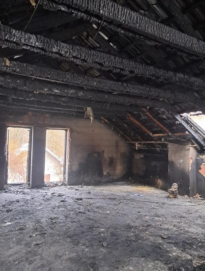 Pokoje na poddaszu i konstrukcja dachowa całkowicie spłonęły. Ta część domu nadaje się już tylko do rozbiórki. Rodzina z Machowej straciła dach nad głową. Teraz zbiera pieniądze na odbudowę domu.