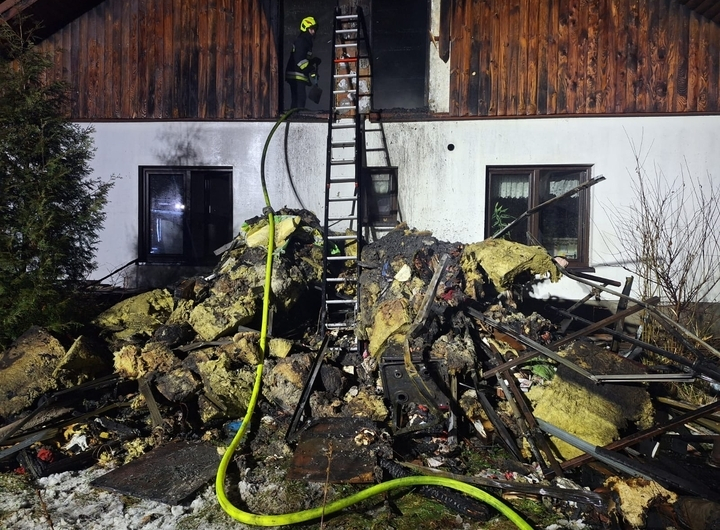 Pokoje na poddaszu i konstrukcja dachowa całkowicie spłonęły. Ta część domu nadaje się już tylko do rozbiórki. Rodzina z Machowej straciła dach nad głową. Teraz zbiera pieniądze na odbudowę domu.