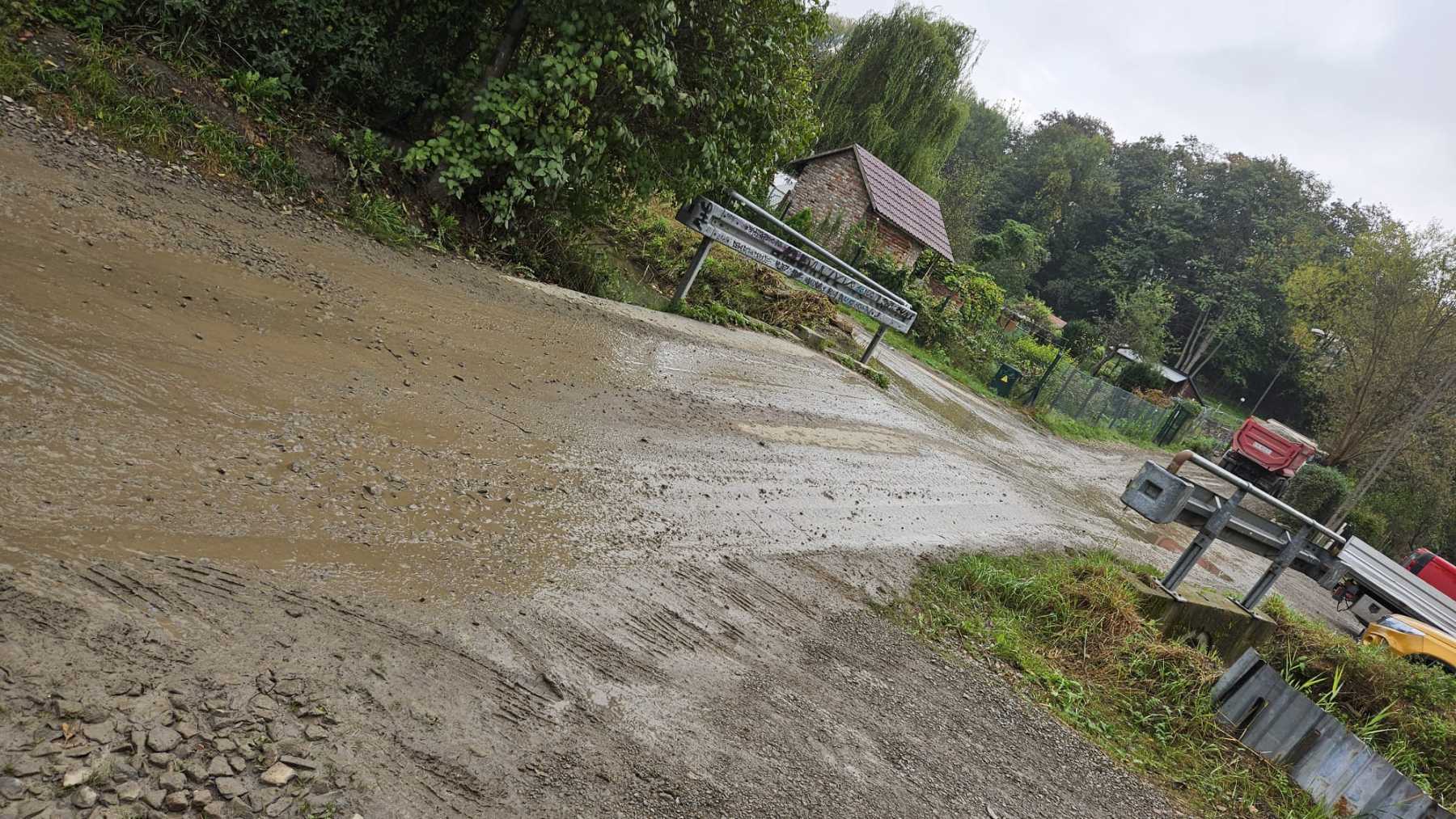 – Na przykład betoniarki, które wylewają wodę na drogę i blokują ją. Trudno przejść do sklepu, bo błota jest po kolana. Powinni to wyczyścić i coś z tym zrobić, a nie zostawiać drogę w takim stanie. Jeździły tu traktory – czyszczarki, ale z podniesioną szczotką, więc nie czyściły tej drogi