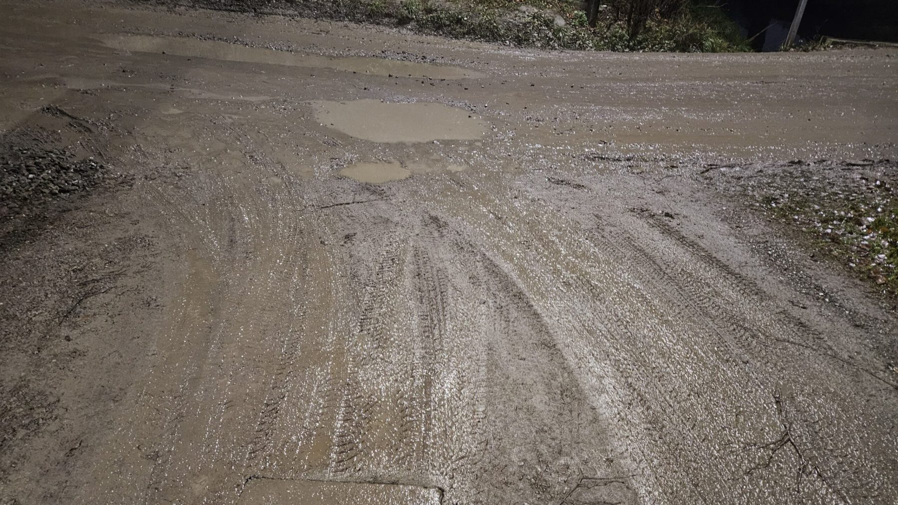 – Na przykład betoniarki, które wylewają wodę na drogę i blokują ją. Trudno przejść do sklepu, bo błota jest po kolana. Powinni to wyczyścić i coś z tym zrobić, a nie zostawiać drogę w takim stanie. Jeździły tu traktory – czyszczarki, ale z podniesioną szczotką, więc nie czyściły tej drogi