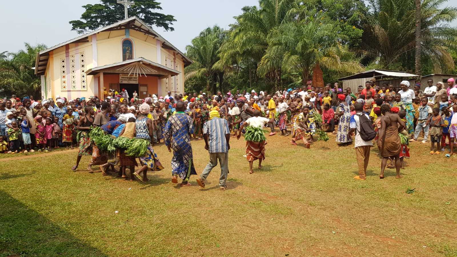 Przed kościołem Pigmeje z pobliskiej wioski Ngudnu pokazali przybyłym swój tradycyjny taniec, a po nim, wszyscy uczestnicy uroczystości zostali zaproszeni na posiłek. Nikomu nie zabrakło jedzenia. Do wspomnianej wioski pigmejskiej bp Leszek Leszkiewicz udał się po południu. Zobaczył z bliska prymitywne życie Pigmejów, ucieszył się szkołą zbudowaną dla nich kilka lat temu przez ks. Piotra Boracę dzięki funduszom zebranym przez kolędników misyjnych z tarnowskiej diecezji.
