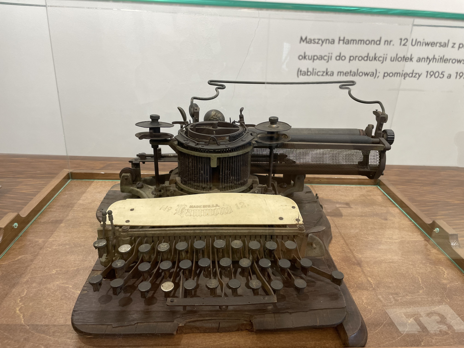 – Gablota poświęcona jest armii niemieckiej, z daleka widzimy hitlerowskie hełmy, tzw. stahlhelmy z kalkomaniami, symboliką wojsk Wermachtu, wojsk piechoty, jednocześnie mamy tutaj szereg obiektów, które dotykają smutnego tematu okupacji, np. dosyć niepozorny podłużny przedmiot przypominający patyk to tzw. bykowiec, czyli pałka wykonana ze skóry byka służąca do katowania ludzi, straszliwy element hitlerowskiego terroru, widzimy dokumenty, symbolikę nazistowską