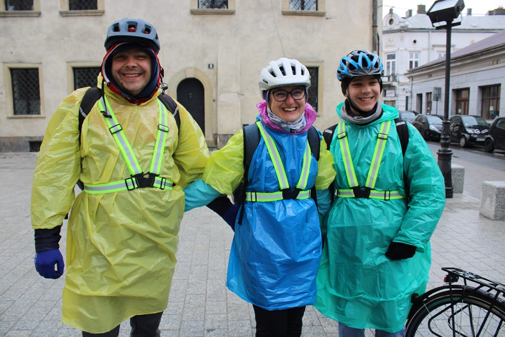 Wszyscy uczestnicy Rowerowej Drogi Krzyżowej zaopatrzeni są zawsze w kaski i szelki odblaskowe, ale tym razem potrzebne były także peleryny. Większość miała ze sobą także krzyże. Części z nich zrobiona została własnoręcznie.