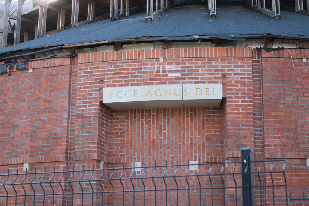Cała budowa to duża dbałość o szczegóły. Kamień jest tak układany, że na zewnętrznej ścianie prezbiterium będzie można zobaczyć krzyż i napis Ecce agnus dei, czyli Oto Baranek Boży, ale też obraz Golgoty i Trójcy Świętej.