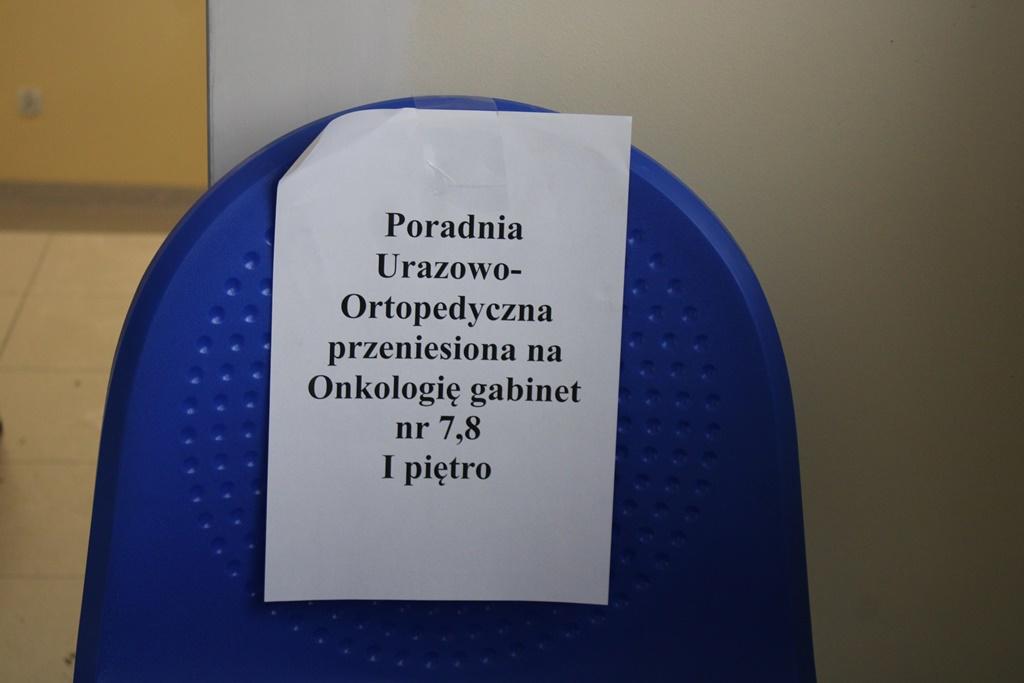 Na czas porządkowania terenu i prac remontowych, poradnia urazowo-ortopedyczna została przeniesiona na onkologię, czyli na pierwsze piętro do pokoi 7 i 8.