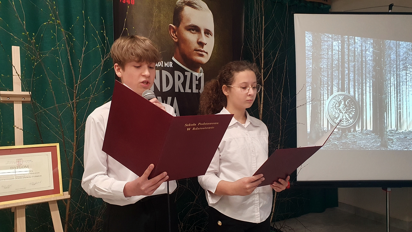 Uczniowie Szkoły Podstawowej w Rdziostowie przygotowali montaż słowno-muzyczny ku czci ks. Andrzeja Niwy.