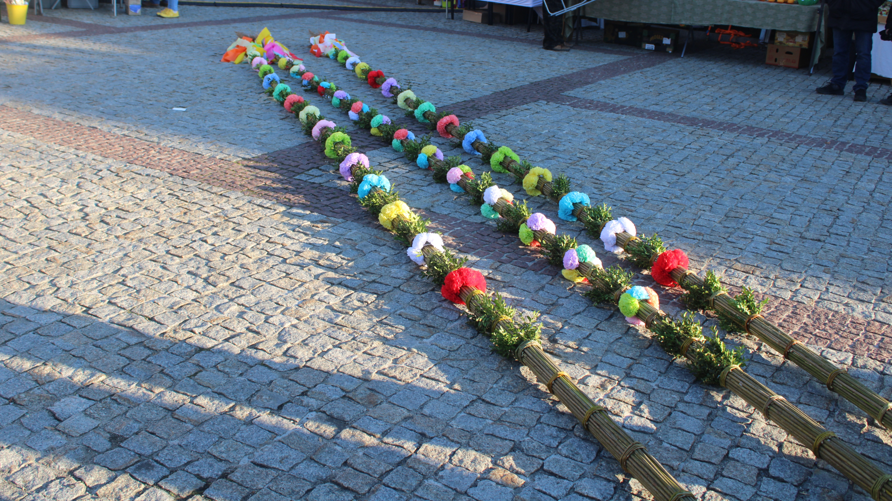 – Trzeba wszystkie kwiatki zrobić na spokojnie. Wszystko poobcinać, przygotować kolorami. Potem poukładać tak, żeby to na palmie ładnie wyglądało. Trzeba porobić tyczki, przywieźć wiklinę. W tym roku był z nią problem, bo jest troszeczkę słaba. Potem spinamy wszystko paskami i po trochę wiążemy, wycinamy, dokładamy i tak w kółko, aż wychodzi palma.