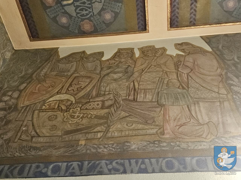 Na ścianach Kaplicy już odsłonięto i odnowiono malowidła ścienne, a aktualnie prowadzone są prace związane z wykonaniem elewacji kościoła.