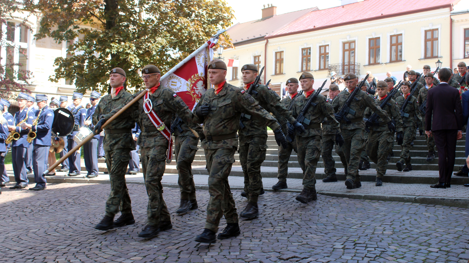 W uroczystości udział wzięli między innymi samorządowcy, służby mundurowe, poczty sztandarowe, harcerze oraz mieszkańcy.