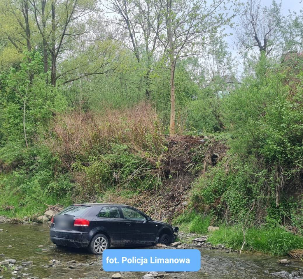 Podróż samochodem Audi w Zamieściu zakończyła się w korycie rzeki. Do niebezpiecznej sytuacji doszło w nocy (6.05). Limanowska policja informuje, że 23-letni kierujący pojazdem marki Audi nie dostosował prędkości do warunków panujących na drodze, w wyniku czego stracił panowanie nad pojazdem.