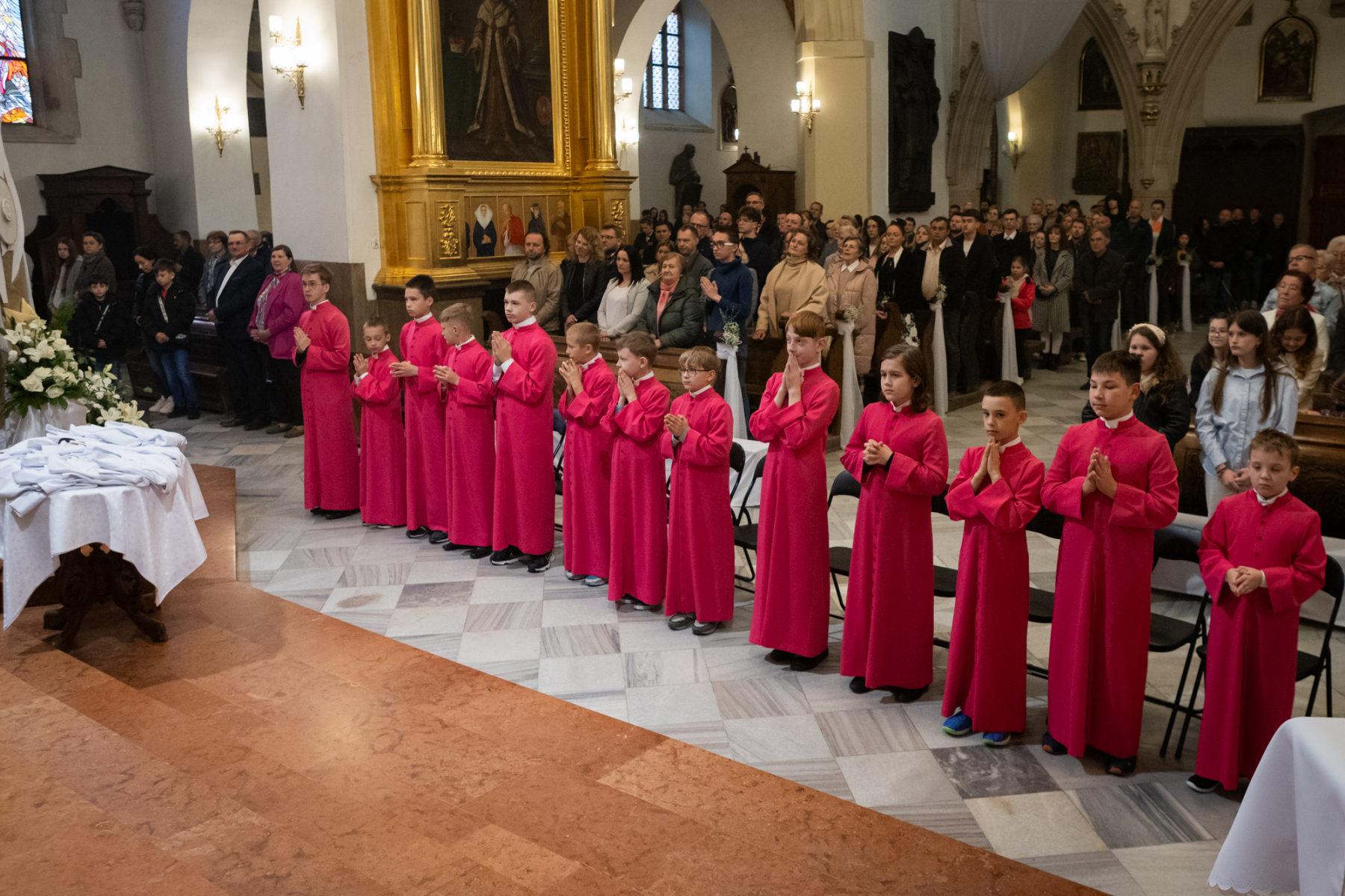 – Chłopcy przygotowują się do bycia ministrantem w katedrze przez cały rok. Nabór rozpoczynamy już w czerwcu, aby rodzice aspirantów mogli od września ustalić tak swoje zajęcia, żeby mieli czas na zbiórki. Później spotkania rozpoczynają się we wrześniu, w listopadzie w uroczystość Chrystusa Króla otrzymują komże i oficjalnie stają się kandydatami. Co roku w niedzielę Dobrego Pasterza są przyjmowani do grona ministrantów. Długi okres przygotowania umacnia w dalszej służbie. W tamtym roku przyjęliśmy 11 nowych ministrantów, z nich niemal wszyscy nadal służą – tłumaczy ks. Jakub Jasiak, wikariusz katedralny i opiekun Liturgicznej Służby Ołtarza.