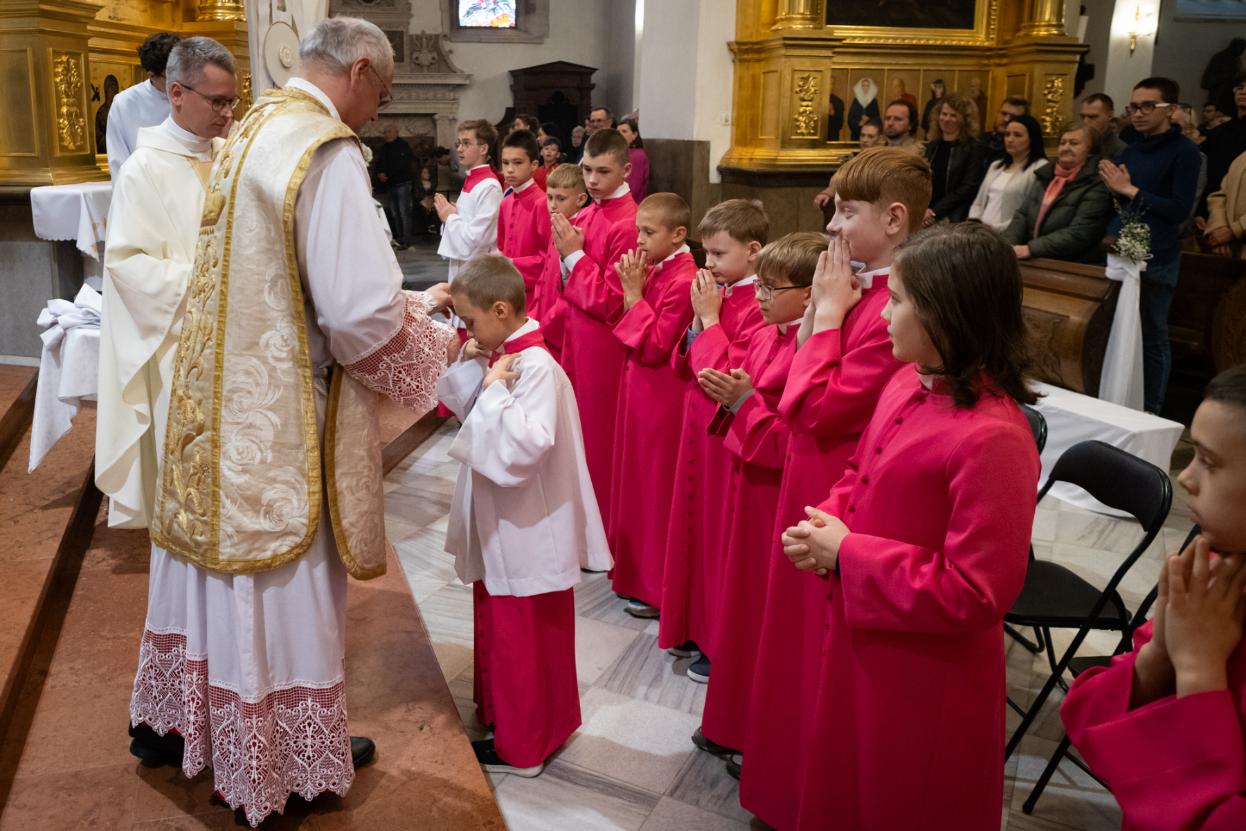 – Chłopcy przygotowują się do bycia ministrantem w katedrze przez cały rok. Nabór rozpoczynamy już w czerwcu, aby rodzice aspirantów mogli od września ustalić tak swoje zajęcia, żeby mieli czas na zbiórki. Później spotkania rozpoczynają się we wrześniu, w listopadzie w uroczystość Chrystusa Króla otrzymują komże i oficjalnie stają się kandydatami. Co roku w niedzielę Dobrego Pasterza są przyjmowani do grona ministrantów. Długi okres przygotowania umacnia w dalszej służbie. W tamtym roku przyjęliśmy 11 nowych ministrantów, z nich niemal wszyscy nadal służą – tłumaczy ks. Jakub Jasiak, wikariusz katedralny i opiekun Liturgicznej Służby Ołtarza.