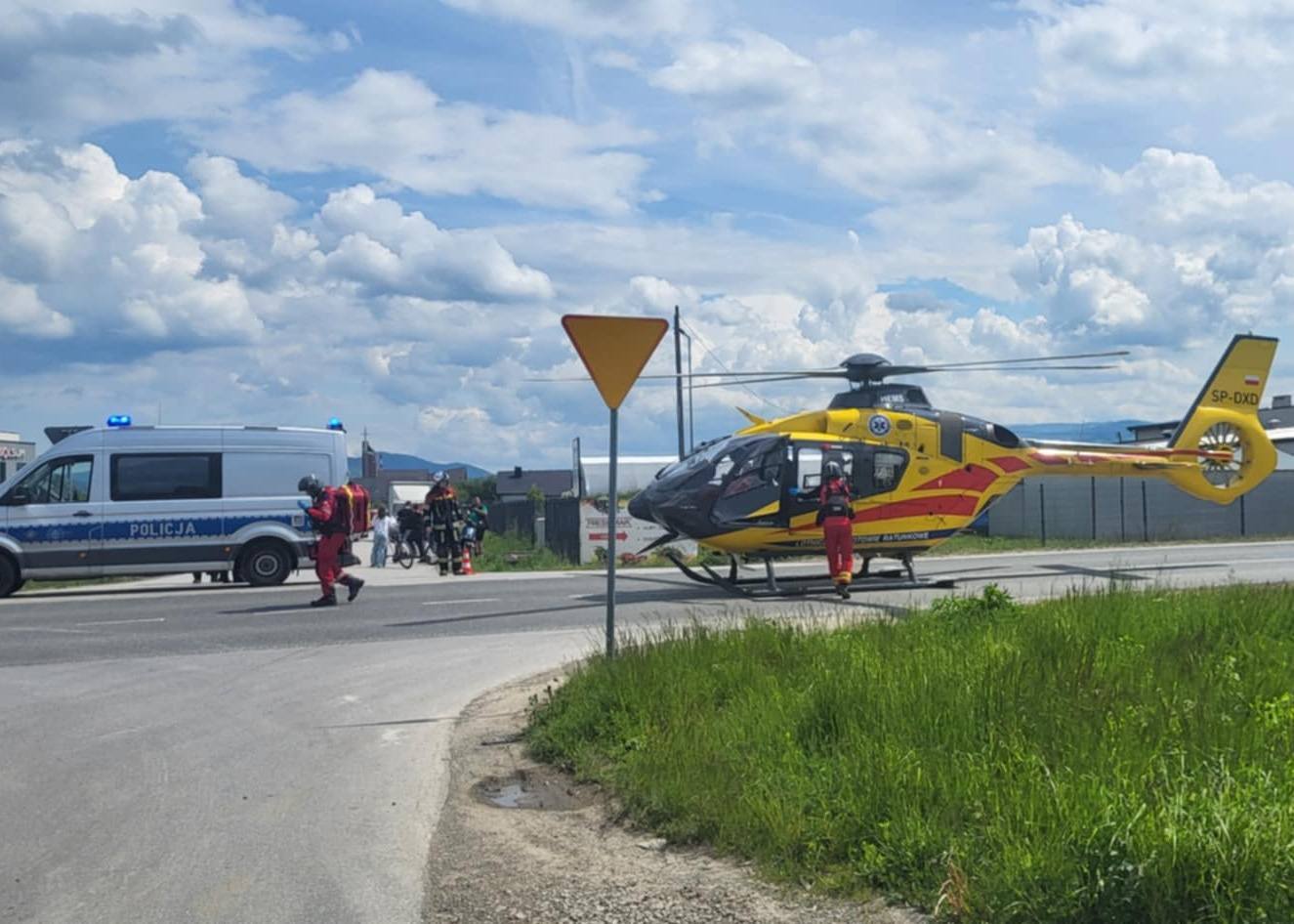 Potrącenie rowerzysty na obwodnicy zachodniej Nowego Sącza. Przyleciał helikopter LPR [ZDJĘCIA]