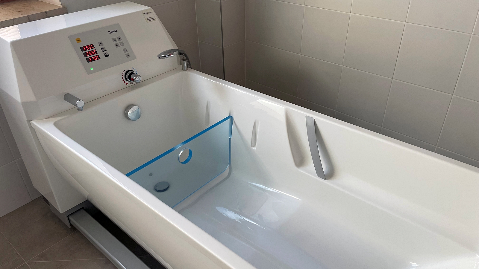 – Wanna podnośna, który służy przede wszystkim pacjentom, bo ci, którzy są leżący i cierpiący, w ciężkim stanie, to dla nich jest to przyjemność wykąpania się. Chcemy to miejsce jeszcze poprawiać, ale konsultujemy to z paniami pielęgniarkami, z opiekunkami, z architektem. Chcemy zadbać o różne drobiazgi do przebierania pościeli, myśli tu też o aromaterapii, muzykoterapii, planujemy ściankę zieleni, tylko chcemy to zrobić w taki sposób, żeby nie przytłoczyło tego miejsca –
