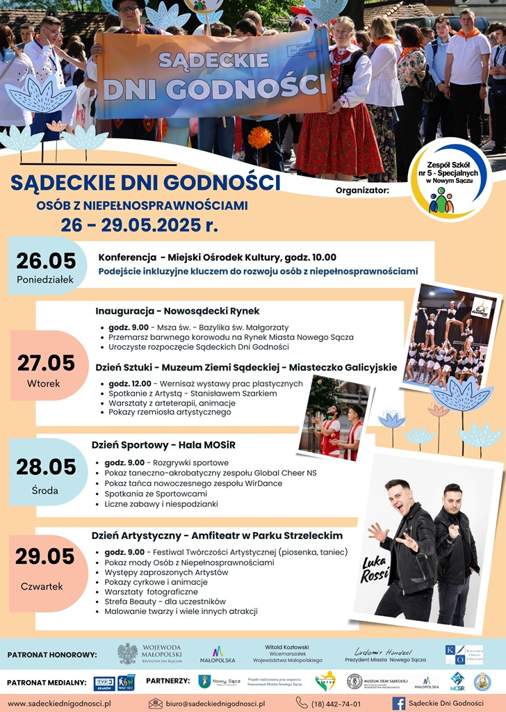 Sądeckie Dni Godności osób z niepełnosprawnościami zakończą się 29 maja w Parku Strzeleckim, gdzie od godz. 9.00 trwać będzie Festiwal Twórczości Artystycznej, a tam między innymi odbędą się występy artystów, pokazy cyrkowe czy warsztaty fotograficzne.