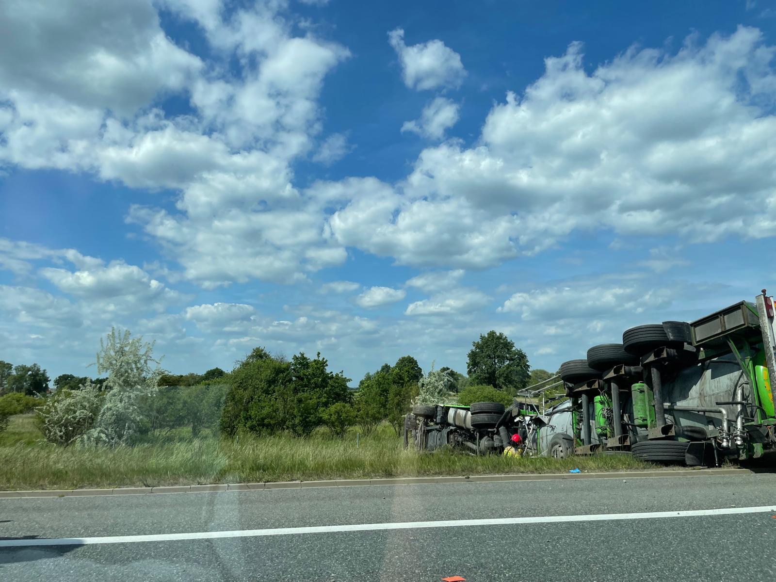 Wypadek na autostradzie – cysterna wypadła z drogi