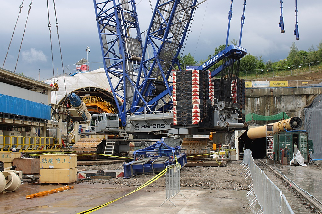 Na razie drążony jest tzw. tunel ewakuacyjny. Podobnie jak ten właściwy, którym pojadą pociągi, będzie miał niecałe 4 km. Tarcza pokonuje 10 metrów górotworu na dobę. Dzieje się to przy jednoczesnym usuwaniu urobku i montowaniu ścian. Drążenie ma trwać 10 miesięcy, licząc od lutego tego roku.