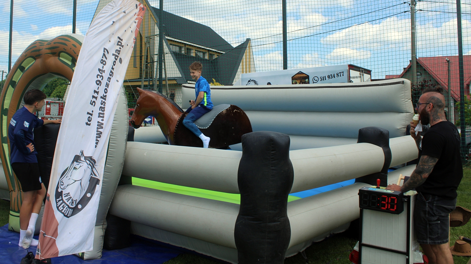 – Tyle atrakcji fajnych, pogoda piękna. Można posiedzieć, pobyć z dziećmi. Byliśmy na dmuchańcach, był minecraft, popcorn, lody. – Mi się najbardziej podobał minecraft – Mi zjeżdżalnia z konikiem. – W końcu jest piękna pogoda, więc cieszymy się sobą i atrakcjami jakie tu są. – Piękna pogoda na pewno i wiele atrakcji, które przygotowała gmina dla dzieci. Byliśmy już na dmuchańcach.