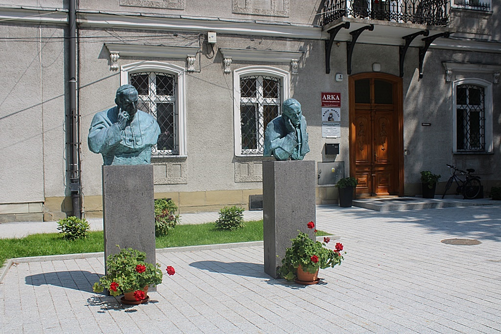 Popiersia ustawione zostały przed plebanią. Ufundowała je parafia, a są one dziełem krakowskiego architekta, prof. Karola Badyny. Jak przypomina proboszcz parafii św. Małgorzaty, ks. Jerzy Jurkiewicz, kardynał Stefan Wyszyński obecny był w parafii podczas koronacji Matki Bożej Pocieszenia w 1963 roku, a kardynał Karol Wojtyła przewodniczył procesji z obrazem Przemienienia Pańskiego ze stacji PKP do bazyliki, co miało miejsce w 1971 roku.