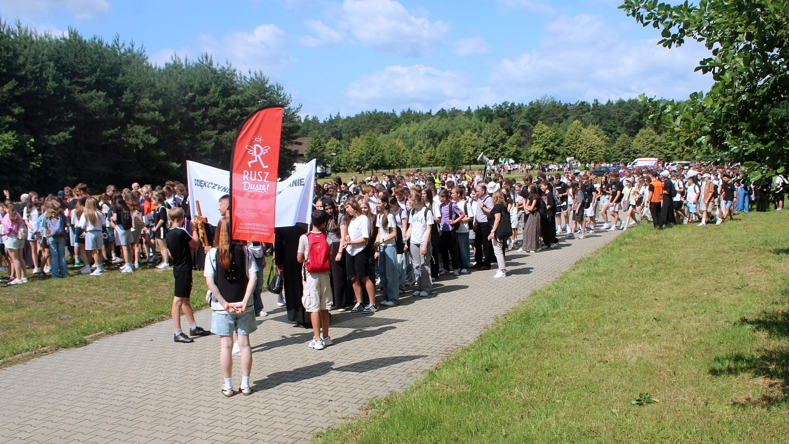 Około 1200 młodych ludzi, którzy niedawno przyjęli sakrament bierzmowania, uczestniczyło dziś (24.06.) w diecezjalnej pielgrzymce dziękczynnej. Trasa wiodła spod domu bł. Karoliny w Wał-Rudzie do Sanktuarium w Zabawie.