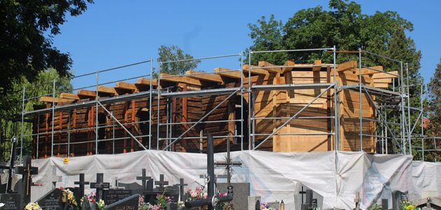 Zobacz galerię: Widać już nowe ściany kościółka św. Heleny w Nowym Sączu. Odbudowa spalonej, zabytkowej świątyni trwa, a wierni liczą na to, że wrócą tam też nabożeństwa. 16 czerwca minął rok od pożaru kościółka św. Heleny, do którego doszło w wyniku celowego podpalenia. Sprawcą był 22-latek, któremu grozi do 10 lat więzienia, a który znajduje … Czytaj dalej Kościół św. Heleny ma już nowe ściany. Cały czas potrzebne są pieniądze na odbudowę [ZDJĘCIA]