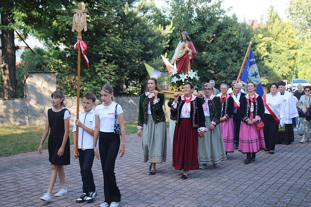 Do kościoła Niepokalanego Serca NMP członkowie arcybractwa przybyli w procesji od kapliczki, którą mieszkańcy miejscowości dedykowali Bożemu Sercu. Było to wotum za ocalenie z powodzi w 1997 roku.