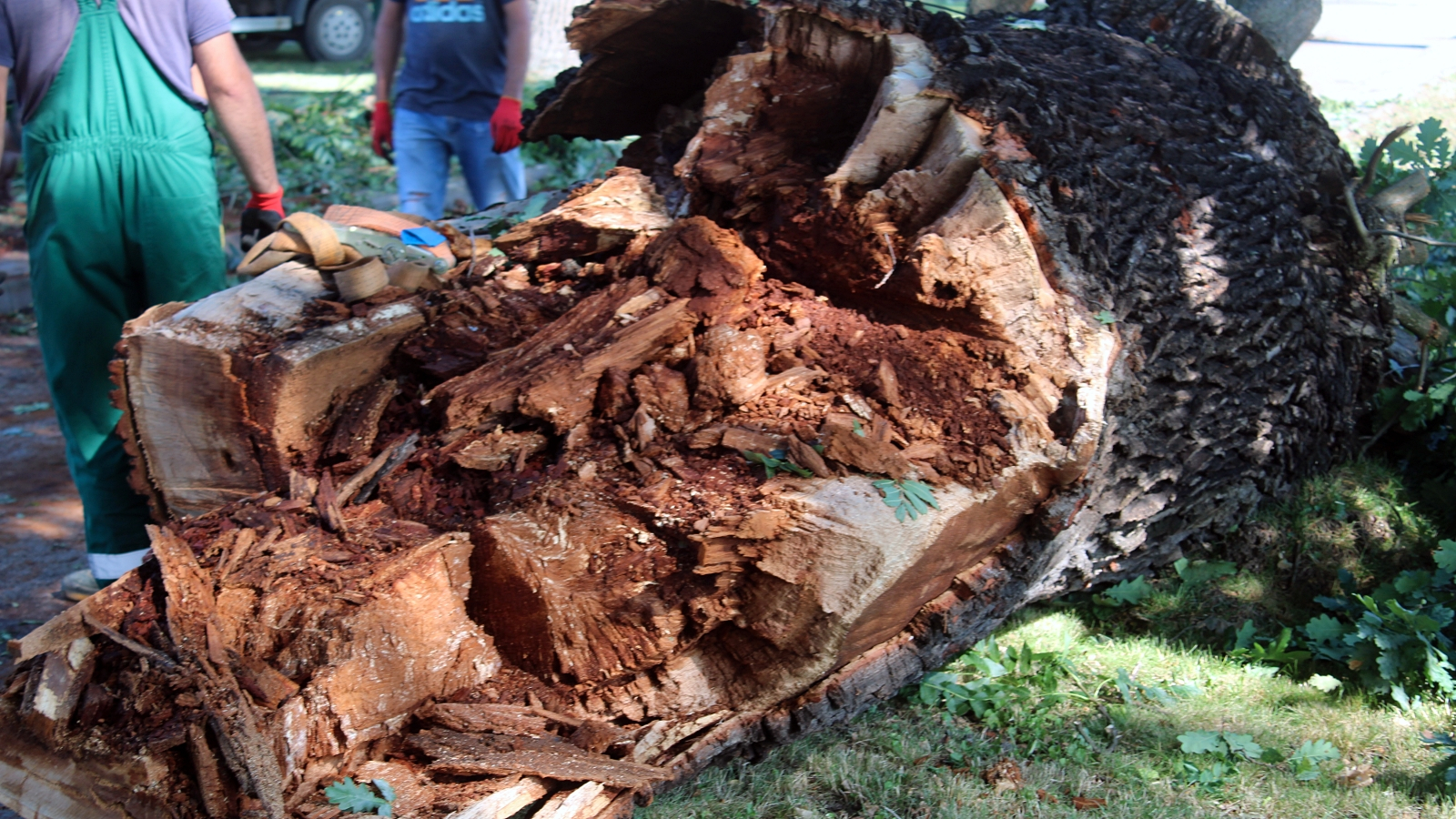 -Na osiedlu tam dalej zerwało dach, tutaj drzewa wywrócone. To spróchniałe drzewo, powinni je wszystkie wyciąć. To są stuletnie drzewa, to musiało pęknąć, bo na tym drzewie jest sama skorupa. Z tego placu zabaw korzystają dzieci, i dobrze, że w tym czasie się nie bawiły, bo to było wieczorem.