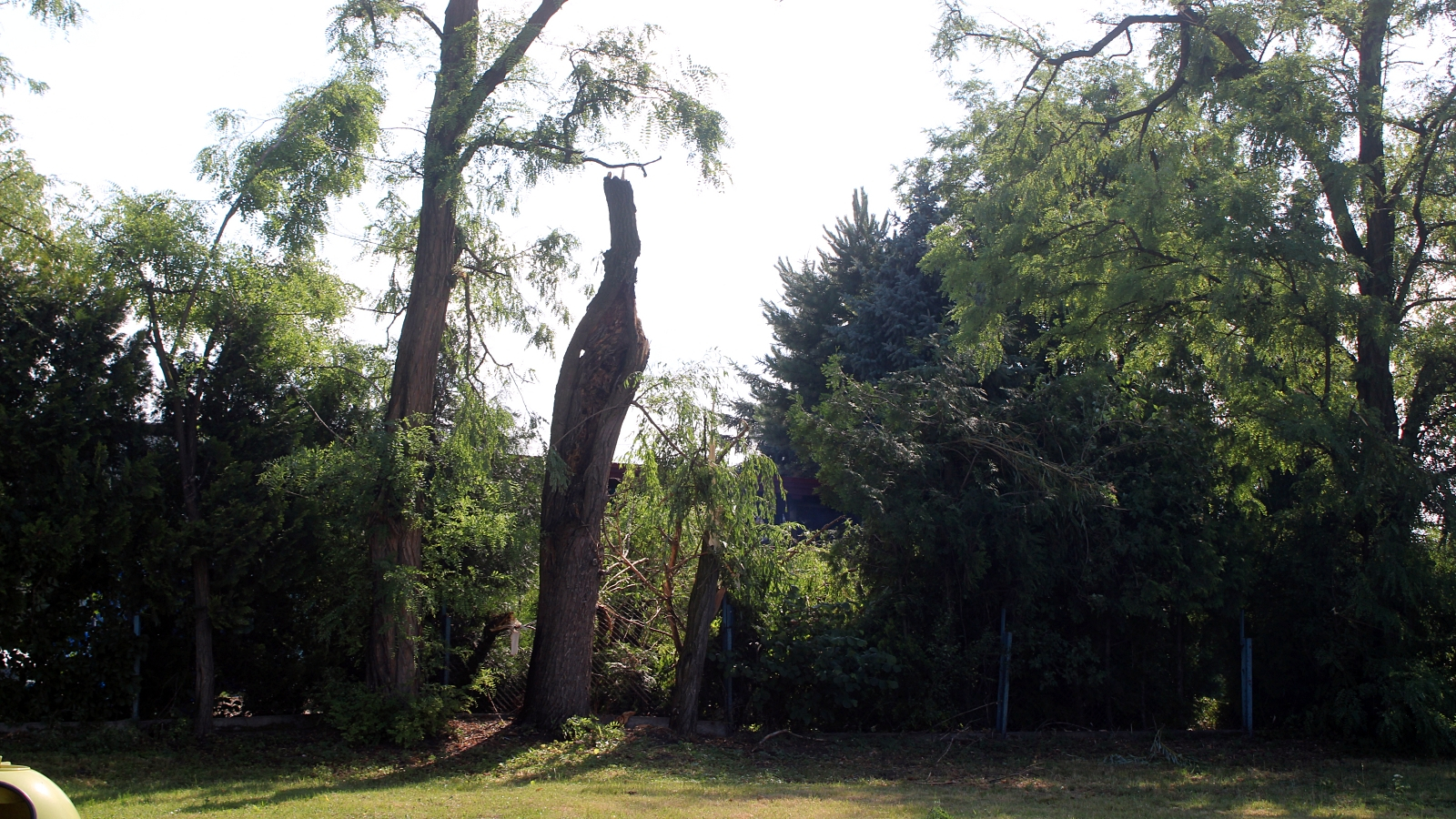 -Szedłem ze sklepu, uciekałem przed deszczem. Wpadłem do tej altany, tutaj, naprzeciwko. Nadeszła taka ulewa, później wszystkie te drzewa się położyły w jedną stronę i nagle było 'bum’, wielki strzał. Wczoraj robotnicy i strażacy robili chyba do północy. Dużą robotę zrobili, Straż Pożarna zaraz była, wszystko uprzątali. Placu zabaw praktycznie już nie ma. Nikomu nic się nie stało, ale tutaj nikogo nie było. Ja byłem chyba najbliżej, bo stałem tutaj. Tylko na osiedlu B, tam jest takie drugie osiedle, tam urwało pół dachu.
