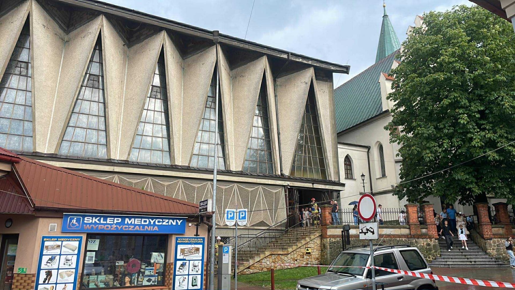 – Strażacy zabezpieczają teren wokół Kościoła św.Jakuba w Brzesku. W wyniku silnego wiatru, doszło do zerwania przykrycia dachu kościoła w trakcie trwa nabożeństwa. Zostało ewakuowanych około 500 osób, nikt nie został poszkodowany.