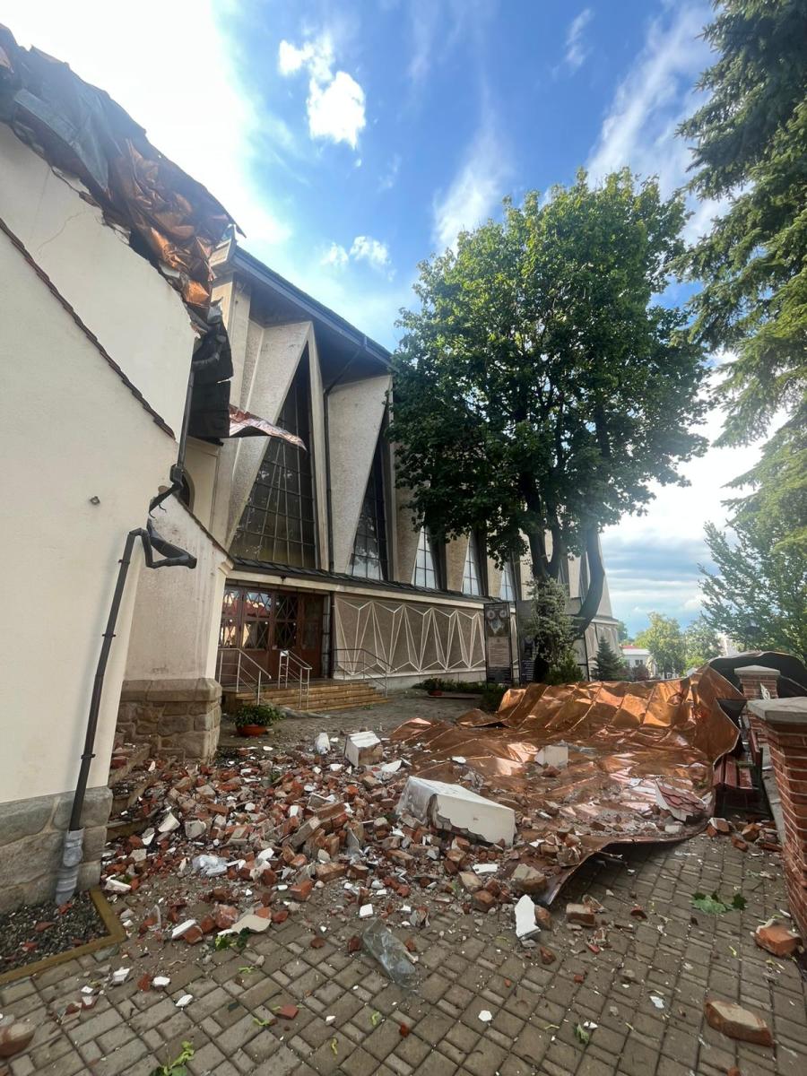 Gwałtowne burze w niedzielne popołudnie przeszły także przez region tarnowski. Tutaj także strażacy interweniowali przy świątyni. Silny wiatr połamał konary drzew przy Sanktuarium Matki Bożej Szkaplerznej w Tarnowie. Gałęzie spadły na ławki otaczające świątynię, na szczęście nikomu nic się nie stało. Nieznacznie został także uszkodzony dach świątyni.